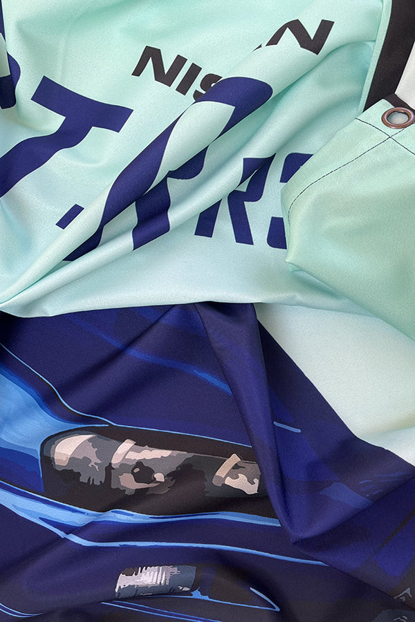 The Nissan Skyline Tapestry is a breathtaking masterpiece that captures the essence of this phenomenal Japanese sports car. This wall hanging features a vivid depiction of the Skyline's royal blue modern body, its glossy exterior glistening against the turquoise backdrop. This tapestry is a must-have for any car enthusiast or art lover looking to accelerate the vibe of their room or office.